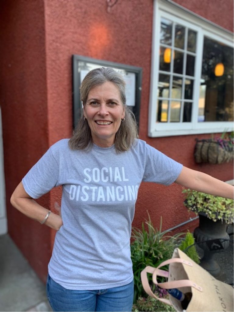 A: During this difficult time, we are selling more frozen soups & meals plus we have a pick up/delivery hot dinner service Tuesday-Saturday, 4-7 pm and expanding our grocery/produce section to better serve our customers. We will continue with our salads, sandwiches and great organic coffee & espresso service. Off sales of cold beer and wine are also available and don’t miss out on buying a Social Distancing t-shirt ($25) or sweatshirt ($40).