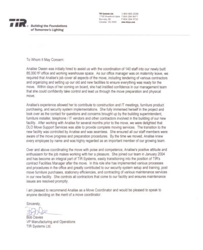 Just to name a few, here are some businesses in the Vancouver area who’s offices we have successfully provided Move Coordination for (you can read more of our real client testimonials here.):